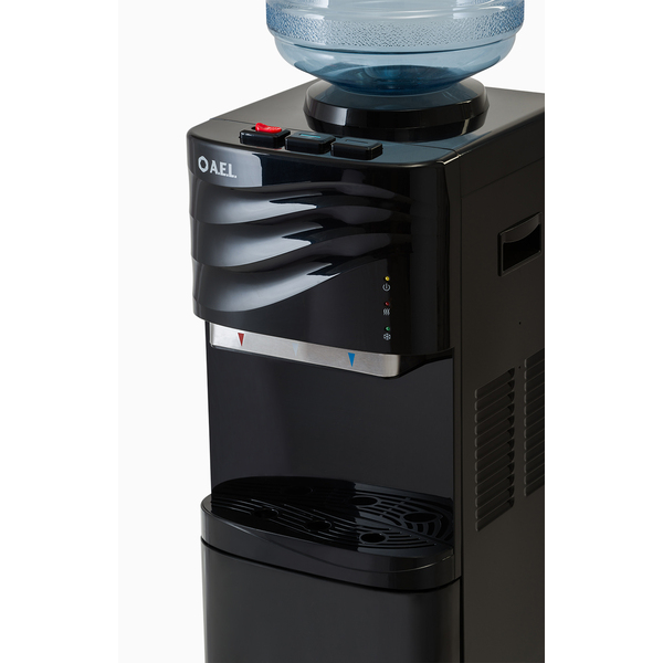 Новый кулер с верхней загрузкой бутыли черного цвета. Оригинальный дизайн с волной на лицевой панели выделяет этот кулер из всех аналогичных по техническим характеристикам. Пользователь может выбрать воду холодную, горячую или комнатной температуры, что позволит экономить электроэнергию. Предусмотрена удобная подставка для стаканов с небольшим резервуаром, где собирается случайно пролитая вода.